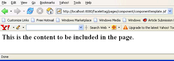 xmlns:ui="http://java.sun.com/jsf/facelets"> Content above component tag will not be rendered. This is the content to be included in the page.Content below component tag will not be rendered. |